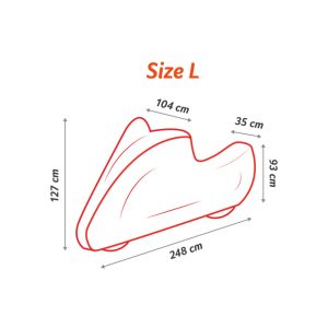 Lungime „L” 248 cm, inaltime fata 127 cm, latime ghidon 104 cm, latime spate 35 cm, inaltime spate 93 cm.