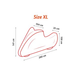 Lungime „XL” 280 cm, inaltime fata 141 cm, latime volan 104 cm, latime spate 35 cm, inaltime spate 93 cm.