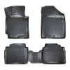Sunt create dupa forma si dimensiunea podelei fiecarui autoturism. Bordura cu inaltimea de 3 cm a covoraselor retine apa, zapada, praful si alte impuritati. Datorita compozitiei chimice a materialului, covorasele nu degaja miros neplacut in interiorul autoturismului. Isi pastreaza vreme indelungata proprietatile initiale si pot fi curatate cu usurinta cu detergenti. Sunt impermeabile si rezistente la temperaturi inalte si joase. Sunt prevazute cu sistem anti-alunecare si sistem de fixare in podea. Covorasul din partea conducatorului auto are o extindere speciala, care acopera complet zona de odihna a piciorului stang. Covorasele din spate sunt legate intre ele printr-o parte ce acopera tunelul de mijloc. Sunt create din material de inalta calitate, rezistent, durabil si reciclabil -TPE.