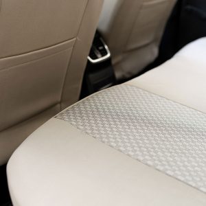 Huse din material textil dublu laminat similar cu tapiteriile originale, cu insertii de piele ecologica si ambele fete dublate cu burete (grosime 5mm);