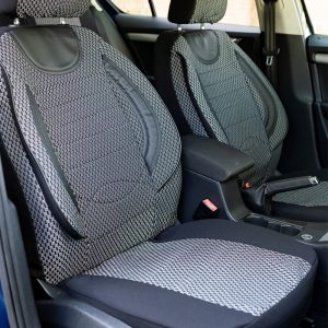 Huse din material textil dublu laminat similar cu tapiteriile originale, cu insertii de piele ecologica si ambele fete dublate cu burete (grosime 5mm);