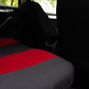Huse din material textil dublu laminat similar cu tapiteriile originale, cu insertii de piele ecologica si ambele fete dublate cu burete (grosime 5mm);