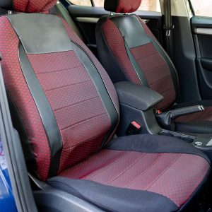 Huse din material textil dublu laminat similar cu tapiteriile originale, cu insertii de piele ecologica si ambele fete dublate cu burete (grosime 5mm);