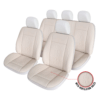 Huse din piele neteda, cu insertii de piele perforata similara cu tapiteriile originale, cu ambele fete dublate cu burete ce confera protectie lombara (grosime 8/25 mm);
