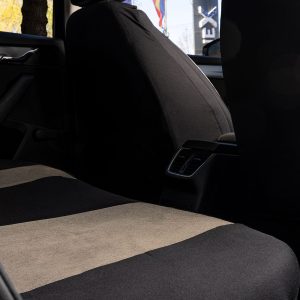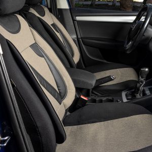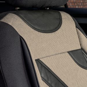 Huse din material textil dublu laminat similar cu tapiteriile originale, cu insertii de piele ecologica si ambele fete dublate cu burete (grosime 5mm);
