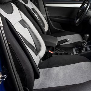 Huse din material textil dublu laminat similar cu tapiteriile originale, cu insertii de piele ecologica si ambele fete dublate cu burete (grosime 5mm);