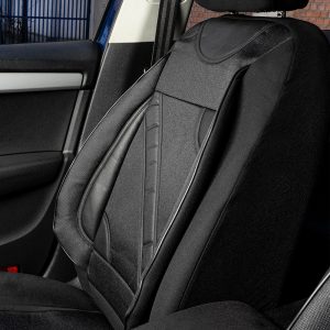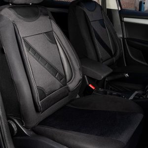 Huse din material textil dublu laminat similar cu tapiteriile originale, cu insertii de piele ecologica si ambele fete dublate cu burete (grosime 5mm);