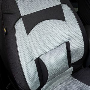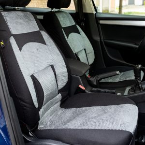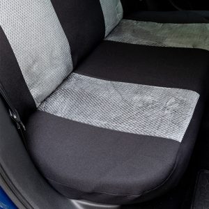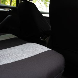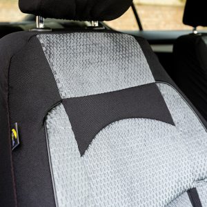 Huse din material textil dublu laminat similar cu tapiteriile originale, cu insertii de piele ecologica si ambele fete dublate cu burete (grosime 5mm);