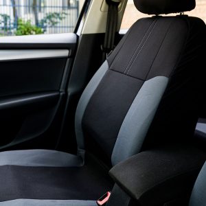 Huse din material textil dublu laminat similar cu tapiteriile originale, cu insertii de piele ecologica si ambele fete dublate cu burete (grosime 5mm);